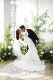 What's a bride to do when she has four amazing wedding dresses to choose from? Wear them all! Celebrity stylist Dani Michelle did just that during her wedding to photographer Ian Morrison. (One of her A-list clients just happens to be Kourtney Kardashian!) The gorgeous bride got married in the picturesque Casa Del Mar hotel in Santa Monica. The venue was utterly romantic and was filled with trees and wild delphiniums. While she got dressed, her bridesmaids wore Ginia monogrammed silk sets before switching into gowns by Lexi and Fame and Partners.