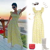 This was a dress moment, yes, but she was still able to make it a shoe moment, too. To add a bright touch against the sunset, she chose a bold red handbag, which was definitely pretty genius, and she wore gold jewelry and a standard pair of sunglasses - the type you've always got at the ready to work all day long, until you're spending the rest of the evening inside. If you're in the market for just one more maxi like I am, I rounded up some smart pairings for you to score ahead, so you can get the look ASAP. And hey, maybe don't worry about it if you forgot to get a pedicure this week. No one will notice in this outfit anyway.