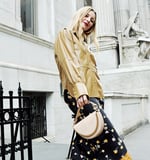 At a flattering midi length, this sleek silhouette is a favorite of mine year-round, but for Fall, I love layering slip skirts over slouchy boots for a cool-weather spin. While my personal aesthetic very much centers around neutral tones like ivory, beige, and black, the colorful floral motif falls within my comfort zone of prints - especially when combined with honey-colored extras like my textured Tory Burch boots and oversize leather button-down shirt from Ganni.