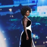 Viola started off the night wearing a black-and-white Alberta Ferretti gown and Stuart Weitzman pumps on the red carpet, but she ditched the heels mid-ceremony for a pair of shiny silver sneakers. When Jimmy asked her who could've stopped her from making the switch, she replied, "Nobody, because I was ready to fight." Watch Viola's full interview above.
