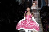 The Moschino Fall 2020 runway was a party, to say the least, although that's nothing new for beloved designer Jeremy Scott, who always invites his fans to attend eccentric shows with a fantastical theme. Models such as Irina Shayk, Stella Maxwell, Gigi Hadid, Bella Hadid, and Kaia Gerber debuted Marie Antoinette-esque looks with towering hair and all the embellishments. Kirsten Dunst would have been proud. Some favorites included the baguette and slice-of-cake clutch, the macaron crossbody, ladylike velvet purses, strands of pearls (including logo drop earrings), and retro sunglasses. But there was an '80s-rocker touch thanks to plenty of signature Moschino leather in all its glory. Scroll through to see full runway looks first, then zoom in on the details.