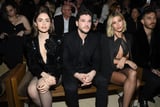 Maeve and Hailey opted for supersheer tights with this ensemble and drop Messika earrings to coordinate with silver rings and Hailey's stunning engagement ring. Hailey slipped into ankle strap pumps with a gold cap toe and showed off her mini from every possible angle during the photocall that takes place before the runway sparks to action. Ahead of Anthony Vaccarello's debut, Hailey sat down next to Kit Harington and Lily Collins, who also came out to rep the iconic brand in their all-black outfits. It's safe to say that even though Hailey was sitting next to the one and only Jon Snow, we could hardly focus on any other business besides her dress. Read ahead to check it out.