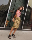 While any pair of chunky sandals will set a '90s tone, certain pieces really channel the mood like plaid skirts รก la Cher Horowitz, cutesy socks, slip dresses, and tube tops. We even love them with low-rise leather pants (a favorite of Jennifer Aniston's Friends character, Rachel Green) or tailored linen separates (not unlike the superchic shorts suit worn by Vivian Ward at the end of Pretty Woman).