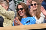 Kate Middleton made her first appearance at Wimbledon on July 5 wearing a gorgeous blue polka-dot dress. Sitting alongside Prince William in the Royal Box to watch defending champion Novak Djokovic, she was spotted laughing, gasping, and cheering at the annual tennis tournament.