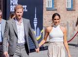 Meghan Markle and Prince Harry have embarked on their European work trip this September, stepping out in Dusseldorf, Germany, to celebrate the launch of the 2023 Invictus Games with a one-year countdown event on Tuesday, Sept. 6. Markle chose a silhouette doubtlessly familiar to those who follow the duchess's style with her Anine Bing sleeveless halter-neck tank, a lightweight, ribbed knit that she tucked into a pair of beige Brandon Maxwell pleated pants.